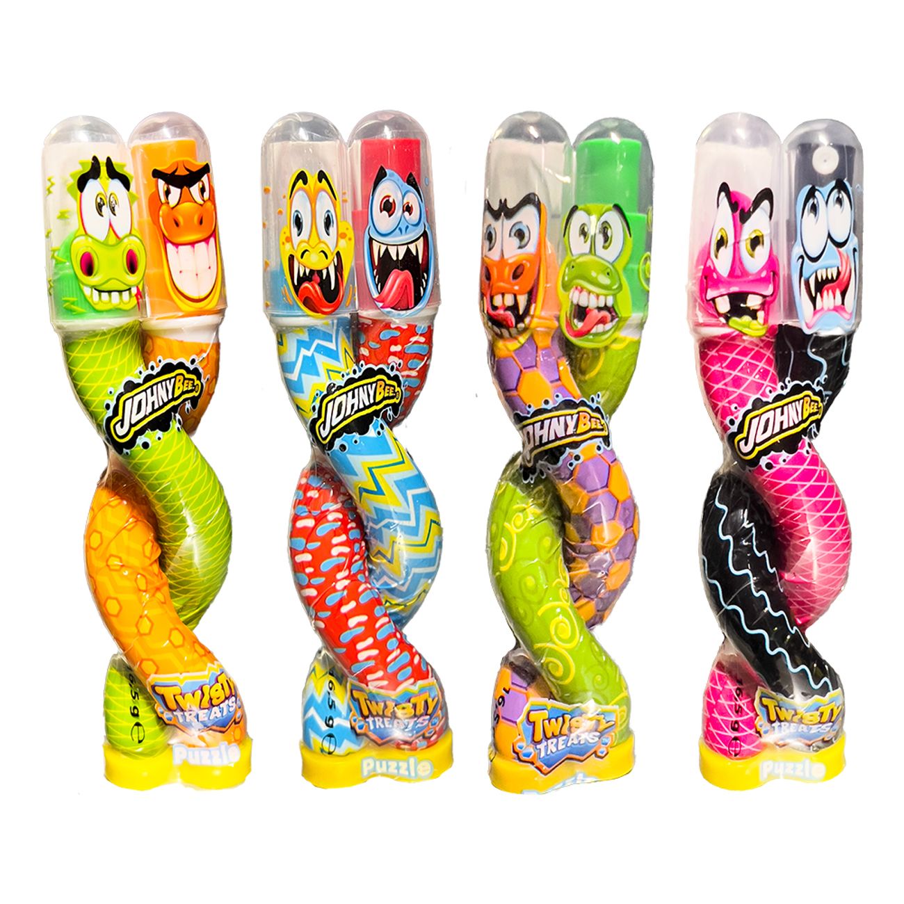 Twisty Treats Spray & Powder er et spraygodteri som kommer med sur pulverdipp. Kommer i fire forskjellige smaker: jordbær, cola, bringebær og grønt eple. Hvilken smak du får, blir en overraskelse!