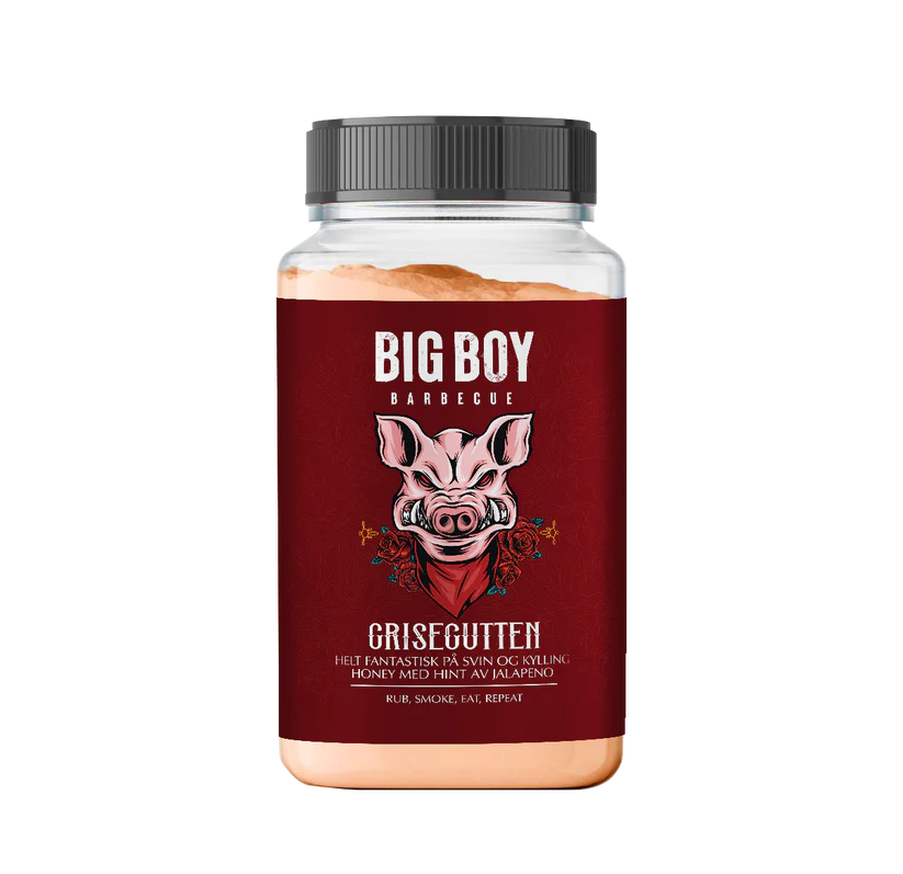 Grisegutten er vår søteste rub, spesielt digg på alt av svin, vi kan nevne spareribs, svinenakke, pulled pork, ytrefilet, koteletter og flintstek. Valgene er altså mange og denne vil helt klart heve smaken. Denne gir deg en søt smak, honning, hint av jalapeno, røkt paprika og en herlig umami smak! Dette er en bbq rub som hele familien fint kan spise, alt fra ungene til svigermor.