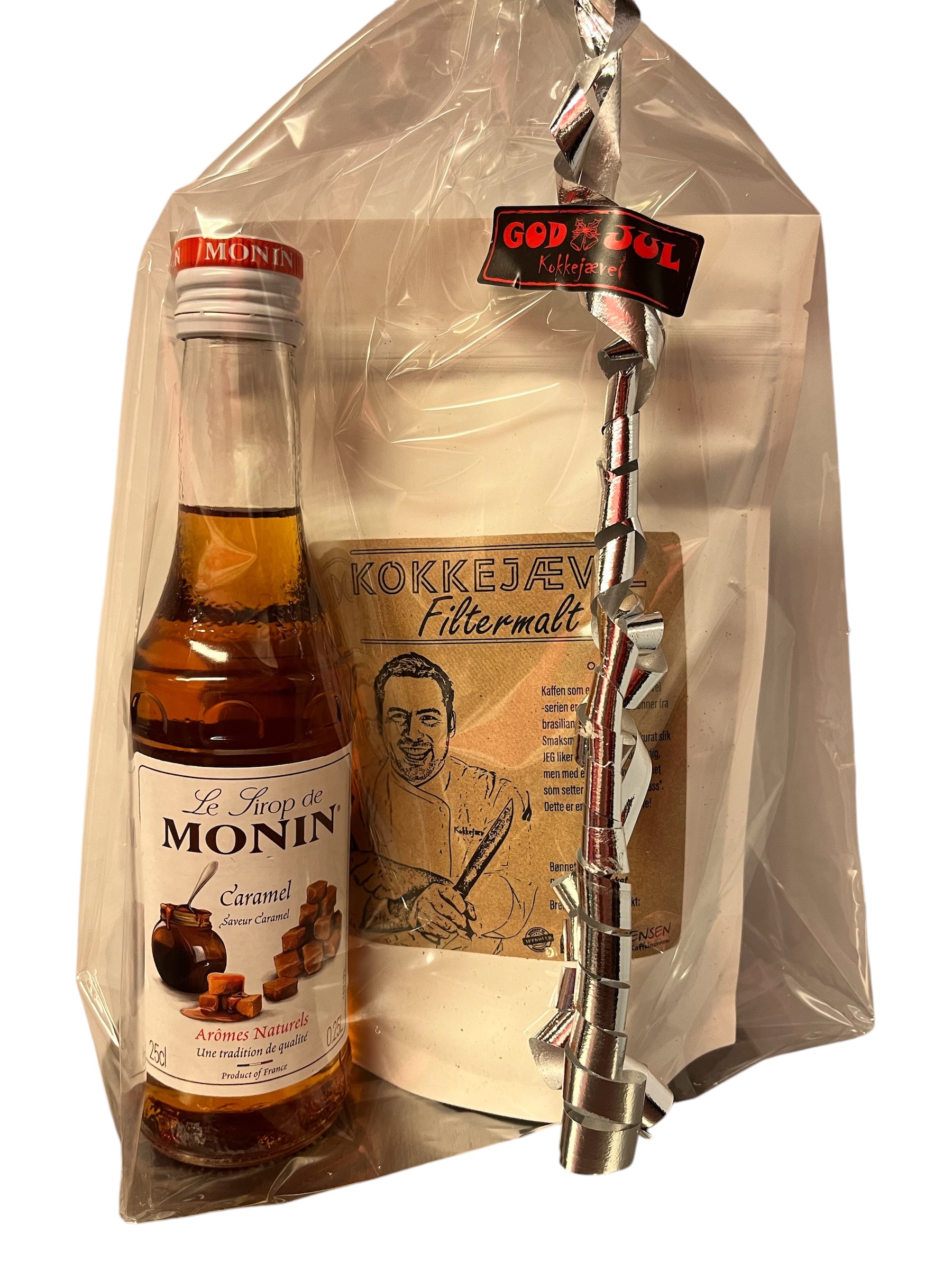 Filtermalt Kokkejævelkaffe brent av Jørgensens kaffebrenneri i Alta + Monin kaffesirup.