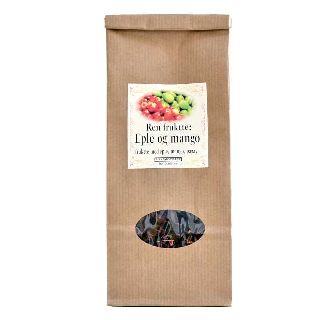 Ingredienser: Hibiskus, nypeskall, eplebiter, papayabiter, mangobiter (mango, sukker, sitronsyre, farge E110, E102), kons.middel E220 og naturlig aroma