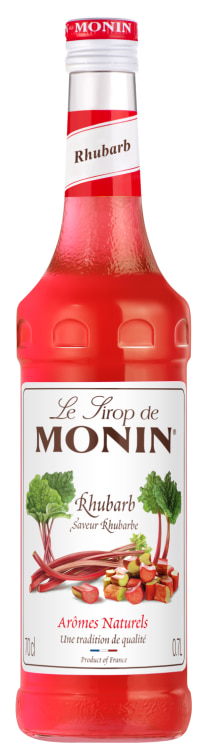 Monin Rabarbra sirup har en tydelig og autentisk smak av rabarbara. Sirupen har en delikat og sterk rødfarge uten kunstig aroma eller fargestoffer. Den passer ypperlig til cocktails, mocktails og lemonader. Rabarabara er en smak som gir gode assosiasjoner til sommer og som er elsket blant de aller fleste.