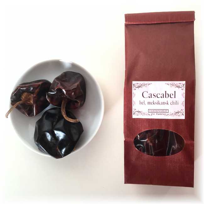 Bruk: Salsa cascabel inneholder stort sett denne chilitypen, samt litt hvitløk og tomat. Rens i så fall chilien for frø og stilk, og vann den ut før den kjøres i mikseren med litt væske og gis et oppkok. Bruk salasaen som dipp, som tilbehør til typiske meksikanske retter. Eller bruk den som saus til f.eks. kylling, da gjerne med litt ekstra tomat.