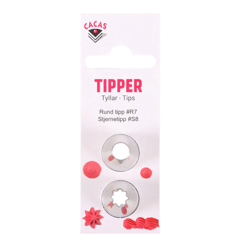 Sett med to tipper. Perfekt til å lage dekorasjoner på dine bakverk.