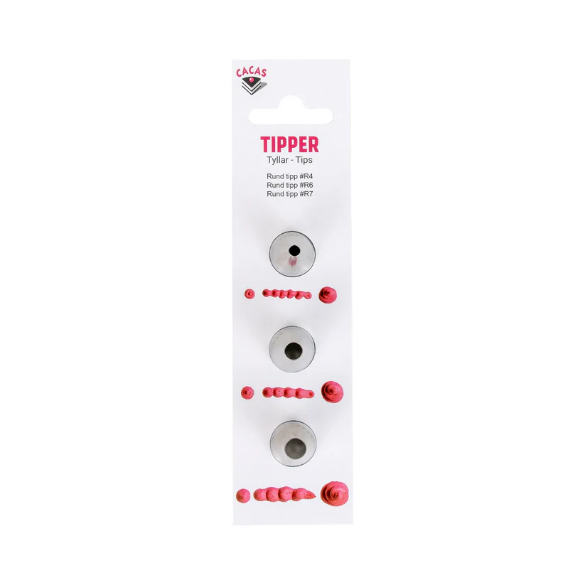 Dekorer kakene dine med dette tippsettet fra Cacas. Ideellt for å lage konturer, bokstaver, prikker, kuler, perler osv.
