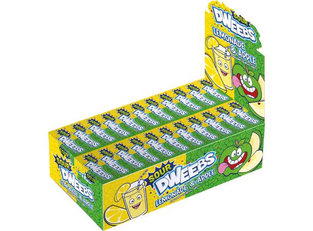 sukker, dekstrose, syre (E330), stabilisator (E414), smaksstoffer, flytende glukose, farge (E141, E161b)