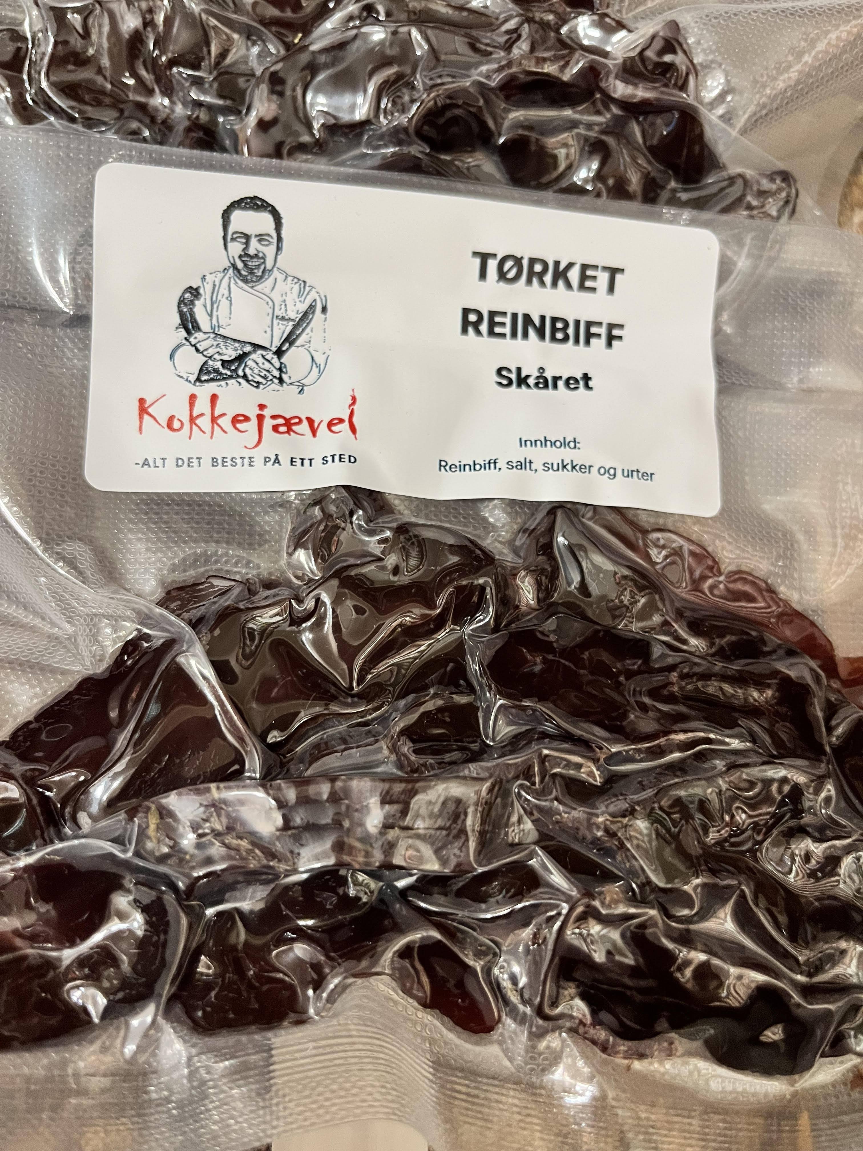 Mange, meg inkludert, foretrekker tørket reinkjøtt framfor reinhjerte. Spesielt når det er biffen som tørkes. Dette er Finnmark på sitt aller, aller beste!
