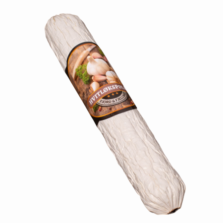 Kjøtt og fett av svin og storfe, svinehjerte, svinetunge, salt, bestrålt krydder m/hvitløk, startkultur og konserveringsmiddel (E250). Røkt