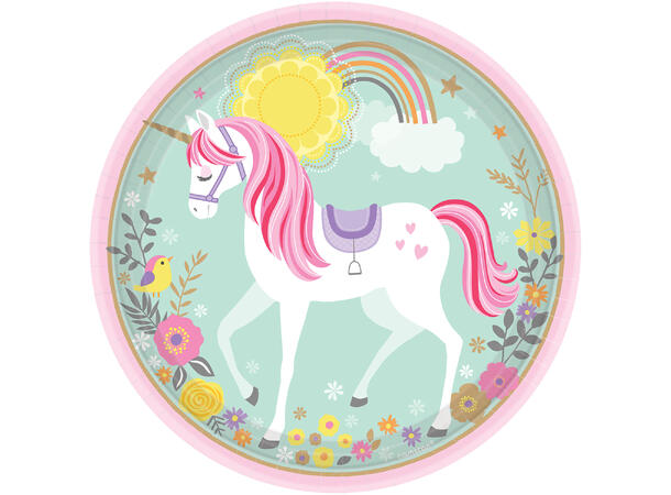 Papptallerken, MAGICAL UNICORN ENHJØRNING 23 cm, 8 stk