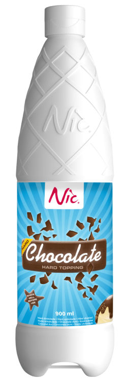 Mørk sjokoladesaus som stivner på isen. Bestselger! Påføres iskrem og desserter for god smak og fint utseende. Kommer i praktiske flasker med dryppkontroll.