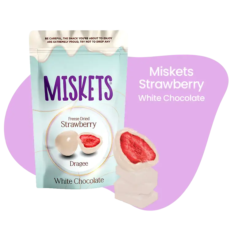 MISKETS WHITE CHOCOLATE COVERED FREEZE-DRIED STRAWBERRY 80g