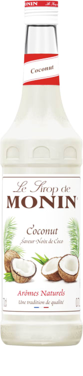 Monin Kokos har en meget intens, konsentrert og langvarig smak av frisk revet kokos med en karamelisert ettersmak.