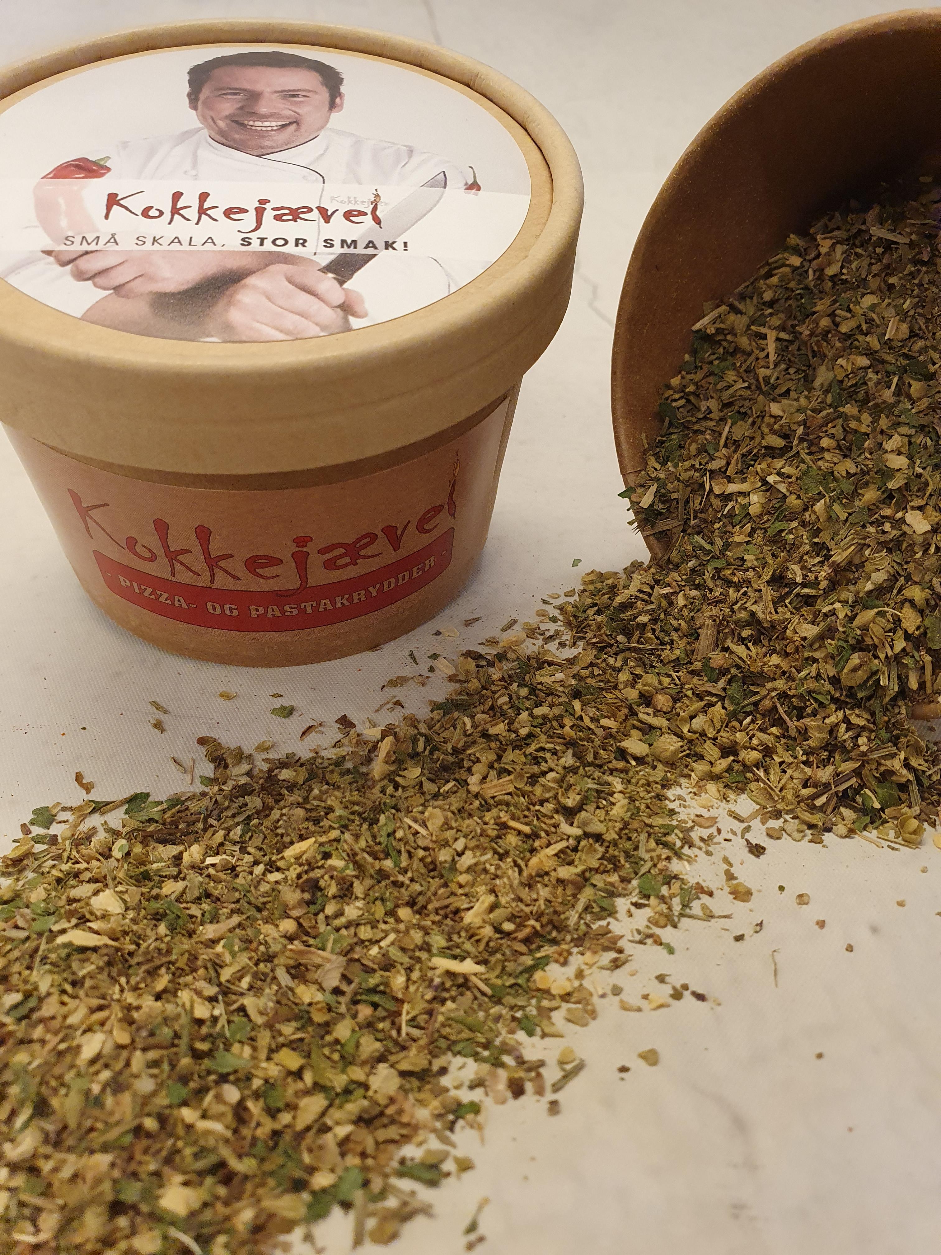 Husk at pizzakrydder alltid skal drysses over pizzaen ETTER at den er stekt. Dette fordi tørkede urter fort mister smaken etter varmebehandling OG at tørkede urter fort blir svidd. Så, nå vet du det. ????