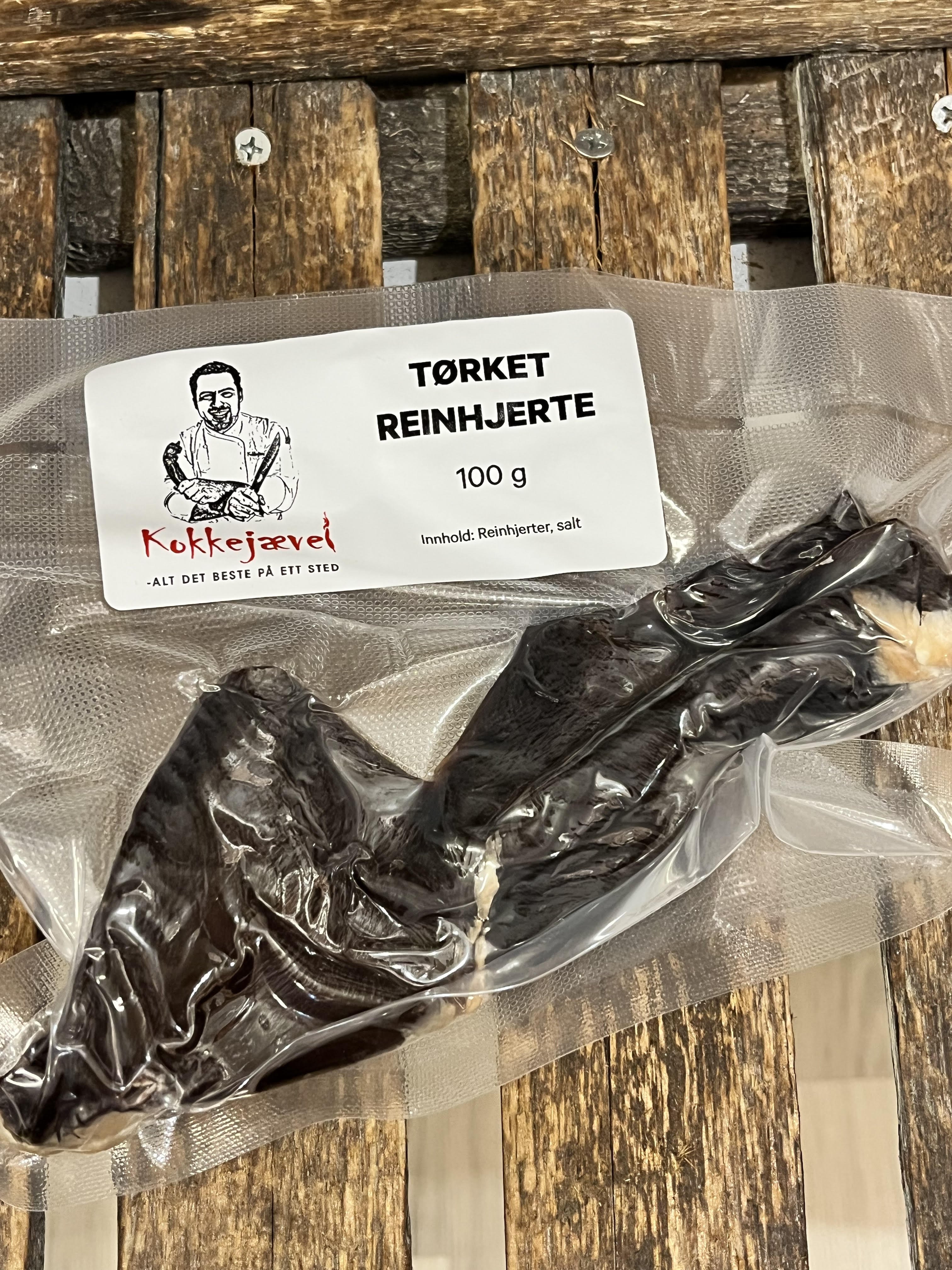 Tradisjonelt produsert tørket reinhjerte uten noen andre tilsetninger enn vanlig salt. Hjertet kommer vakuumert og anbefales nedfryst ved langtidslagring.