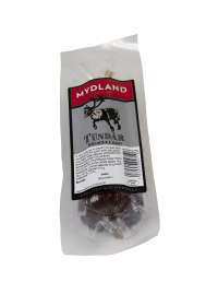En rustikk spekepølse fra Mydland. Inneholder ekstra mye reinsdyrkjøtt. Til 100 g ferdig vare er det benyttet 149 g reinsdyrkjøtt. Anbefales!