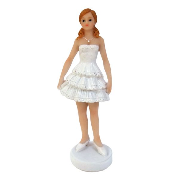 Konfirmant, jente med hvit tyllkjole, 11 cm
