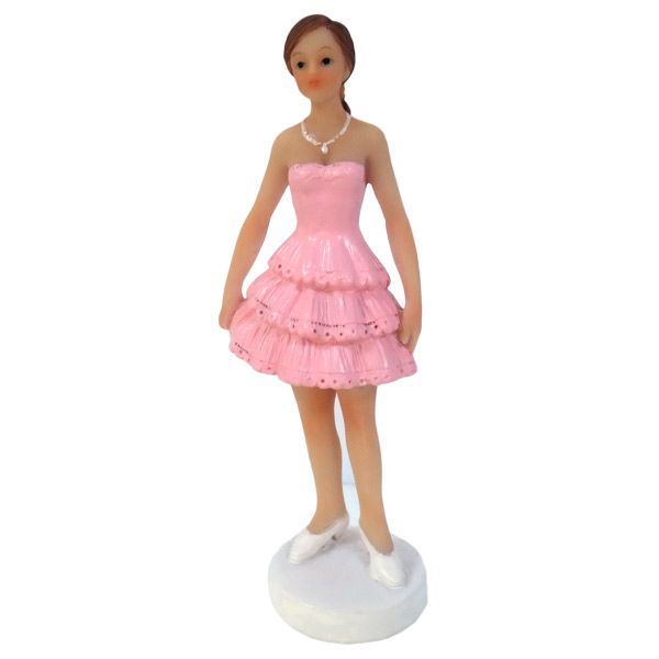 Konfirmant, jente med rosa tyllkjole, 11 cm