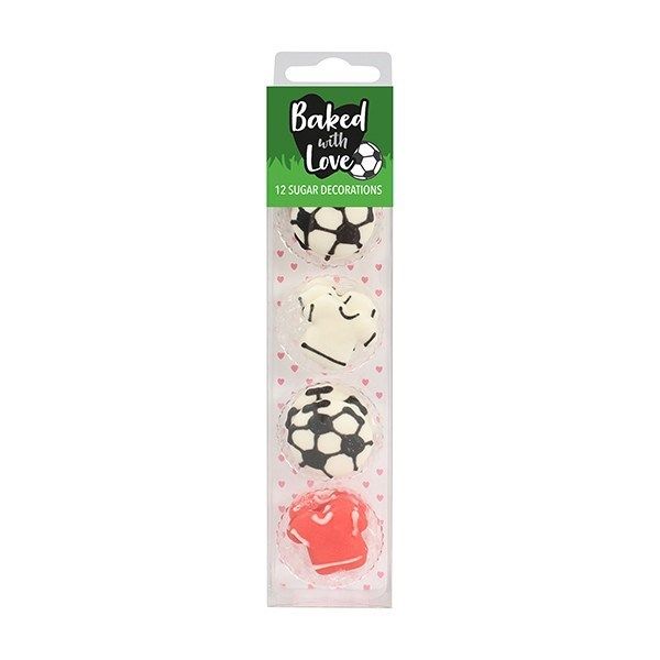 Sukkerpynt, fotball, drakt og ball, 12 stk