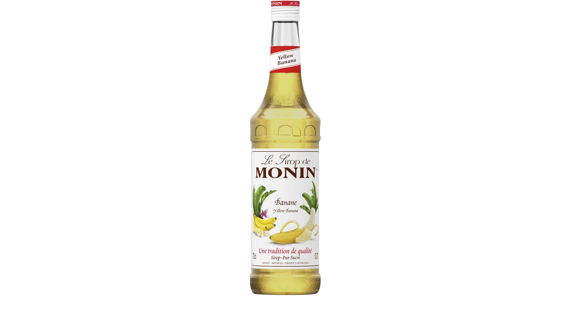 Monin Yellow Banana Syrup er en drinksirup med smak av banan. Selges i flaske på 70 cl. Åpnet flaske holder seg i tre måneder.