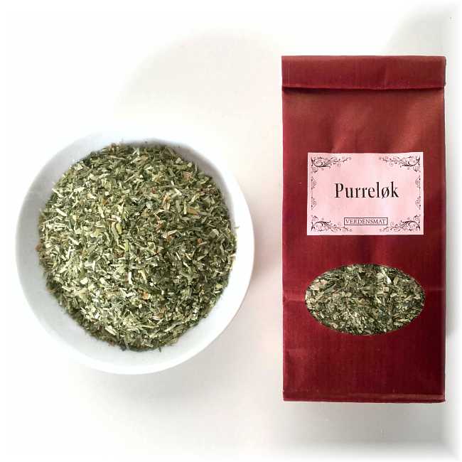 Sammen med tørkede selleriblader blir et par skjeer tørket purreløk dessuten en perfekt erstatning for en grønnsaksbuljongterning, helt uten e-stoffer!