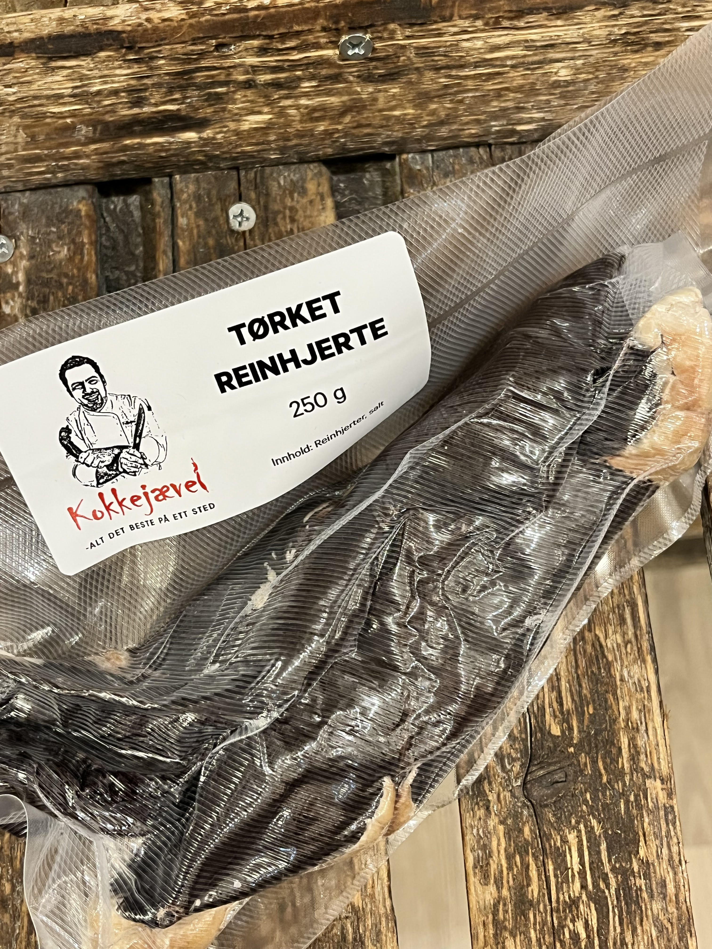 Tradisjonelt produsert tørket reinhjerte uten noen andre tilsetninger enn vanlig salt. Hjertet kommer vakuumert og anbefales nedfryst ved langtidslagring.
