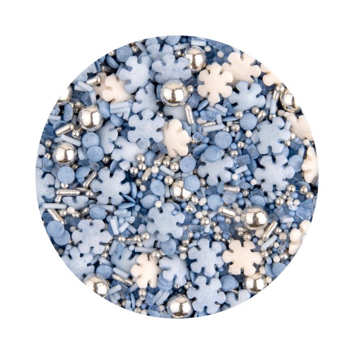 Miksen består av strø som hører vinteren til og inneholder snøkrystaller, perler, crispy kuler, vermicelli m.m. i nydelige blåtoner.