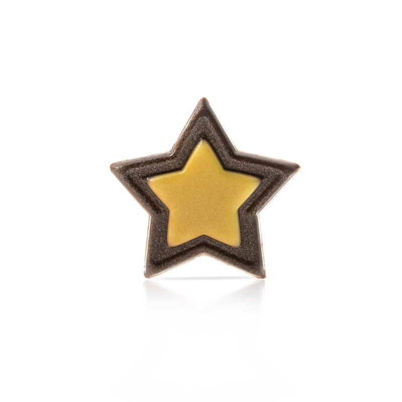 Sjokoladepynt. Anvennelig sjokoladepynt formet som en stjerne i to farger. Passer hele året på små og store kaker. Ø35mm