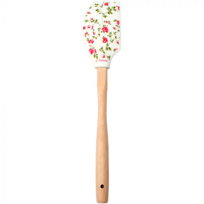 Slikkepott i Silikon med treskaft, Mønster Rosa Blomster. Tåler en temperatur på 240 grader. Størrelsen på slikkepotten er 6 x 11 cm, lengden på skaftet er 21 cm.