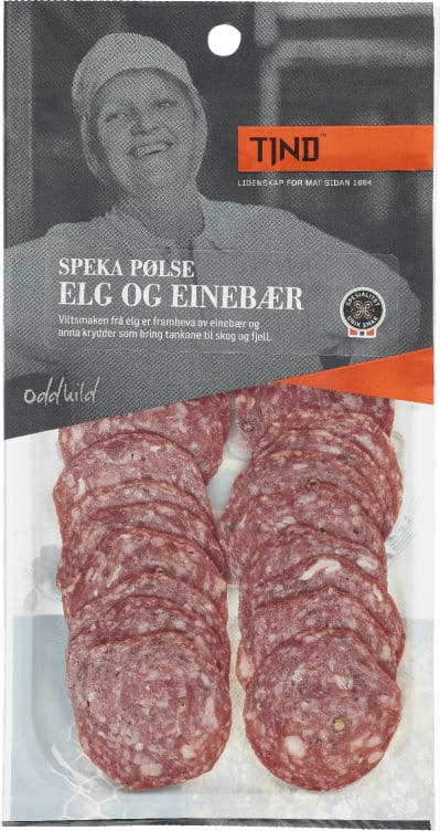 Viltsmaken av elg er fremhevet av einebær og andre krydder noe som bringer tankene til skog og fjell. Produktet inneholder 40 % elg samt einebær og noe hvitløk. En kraftfull opplevelse med en dyp rød farge. Produktet har spesialitetsmerke noe som garanterer bla norsk fersk råvare.