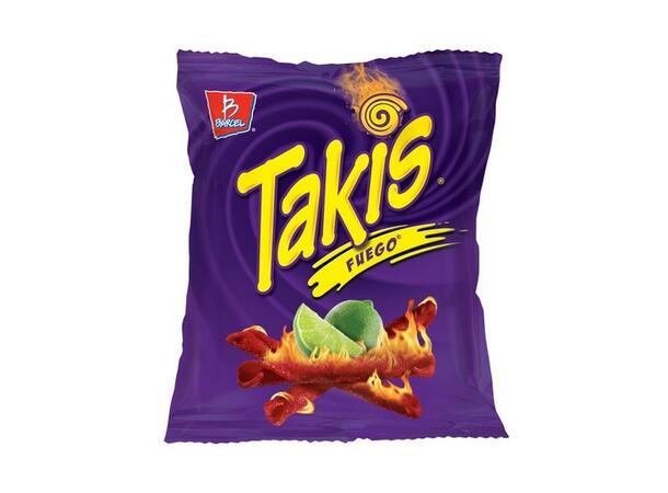 Et kryddereventyr i en pose! En skikkelig smakfull og het pose med Takis Fuego. Disse krydrede og sprø maisstengene er