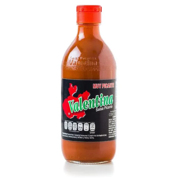 Salsa Picante av Valentina hot sauce brukes til å tilsette smak og varme til snacks eller "botanas" - den mest kjente pikantesausen i Mexico. Et krydret med sitrusaktig og middels varme. Denne varme sausen brukes på chips, hakket agurk, egg eller til og med chicharones for å gi styrke og smak til snacks. Black Label er sterkere enn orginalen.