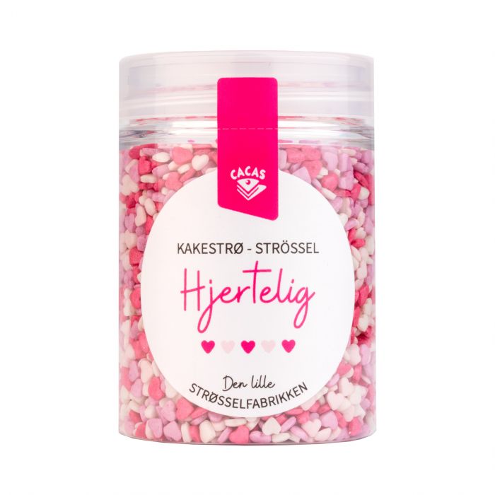Miksen består av minihjerter i nydelige rosa nyanser.